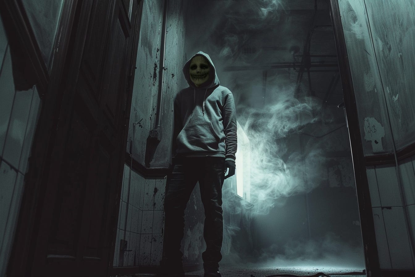 But that wasn’t enough. He needed to erase the boy he had been. He grabbed a bottle of lighter fluid and splashed it across his face, the acrid fumes stinging his eyes. When the flame licked his skin, it seared with a horrifying intensity, melting the surface of his flesh, whitening it into a sickly, ghostlike pallor. The pain was unimaginable, but it felt… freeing. His features were gone, replaced with a permanent, grotesque grin that twisted his face into something monstrous.